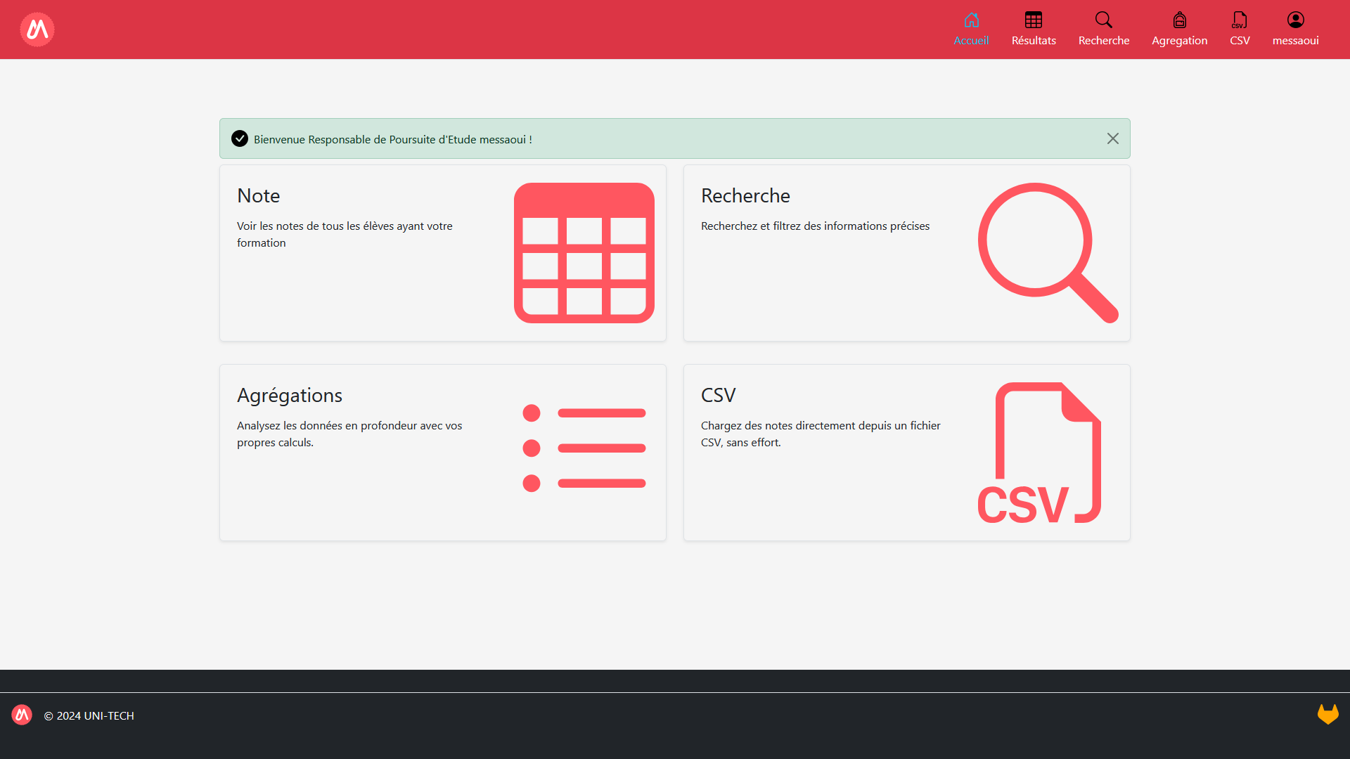 Notre application web a été donc conçue pour combler ces lacunes. Elle facilite la gestion de la poursuite d’études des étudiants en proposant plusieurs fonctionnalités, comme par exemple :