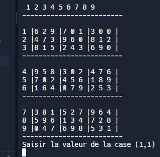 Lors de ma première année de BUT informatique, j’ai travaillé sur la réalisation du célèbre jeu sudoku, ou l’on jouait une partie contre un ordinateur, sur la console, ou la grille était représentée par une matrice.